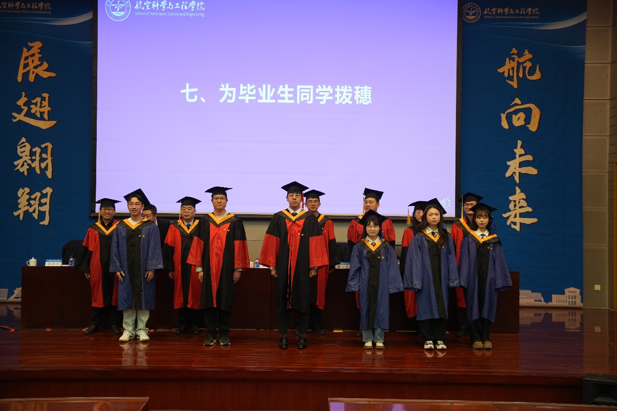 院长潘翀代表学院祝贺同学们顺利毕业,并寄语2025届毕业生,期待大家远走高飞,一飞冲天。对于未来的人生航程,潘院长提出三点期望,激励2025届研究生毕业生。一是要胸怀梦想。潘院长分析了近期的国际形势并指出,只有拥有强大的空天国防力量才能维持安定的社会局面,希望毕业生胸怀梦想,不论从事什么行业都不失去空天报国的理想本色。二是要坚定信念。潘院长分享了近期去扬州研究院的调研经历,以及校友的亲身经历,勉励毕业生坚定信念,在受到挫折时保持初心梦想,发扬北航人骨子里“不服输、不怕苦、不信邪”的精神。三是要放眼世界。面对目前的国际形势,要有国际视野,不懈努力、不断阅读,使我国的空天技术早日达到世界领先水平。